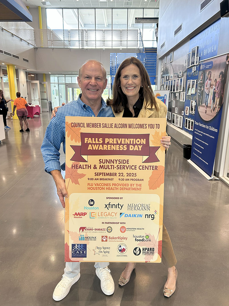 Falls are the leading cause of fatal and nonfatal injuries among seniors. As a council member, I've had the honor to host Falls Prevention Awareness Day events annually since 2020. The programs include exercises to improve our strength and balance as well as other tools and tips aimed at helping seniors prevent falls. Before and after the program, seniors have the chance to visit with local service organizations, agencies, and city departments. Last year, nearly 100 seniors gathered at two locations over two days in both Kashmere Gardens and Clear Lake.