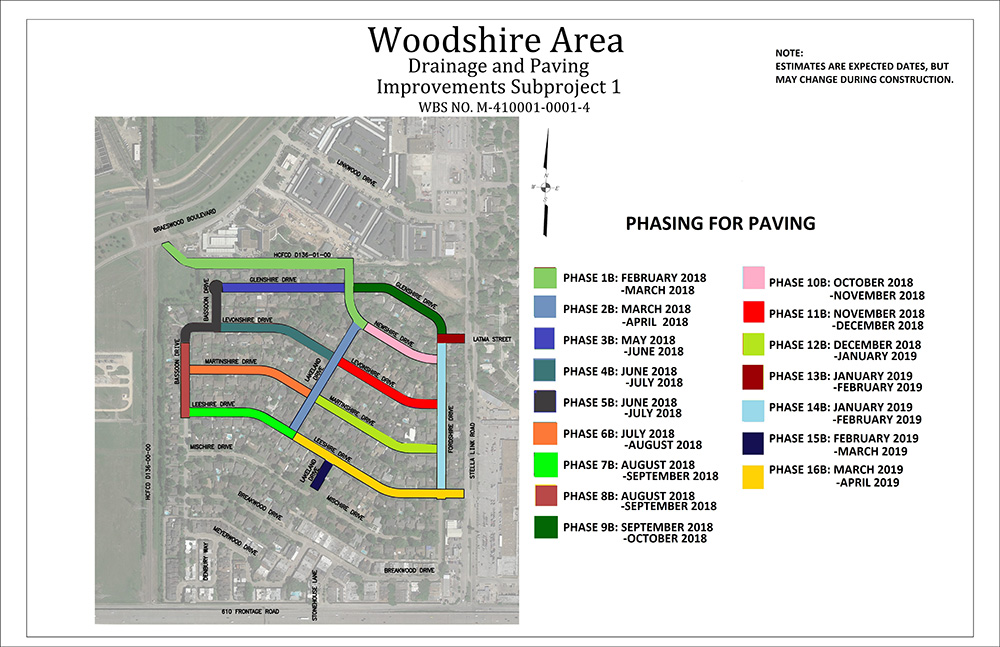 The Woodshire Storm Drainage Capital Improvement Project (CIP) – Subproject 1, is scheduled to start on November 27, 2017 and construction is projected to be completed in May 2019. The work involves the reconstruction of the roadway, replacement of the storm sewers and improvement of sidewalks along the entire length of the project. In most cases, the roadway will remain with the existing curb lines.