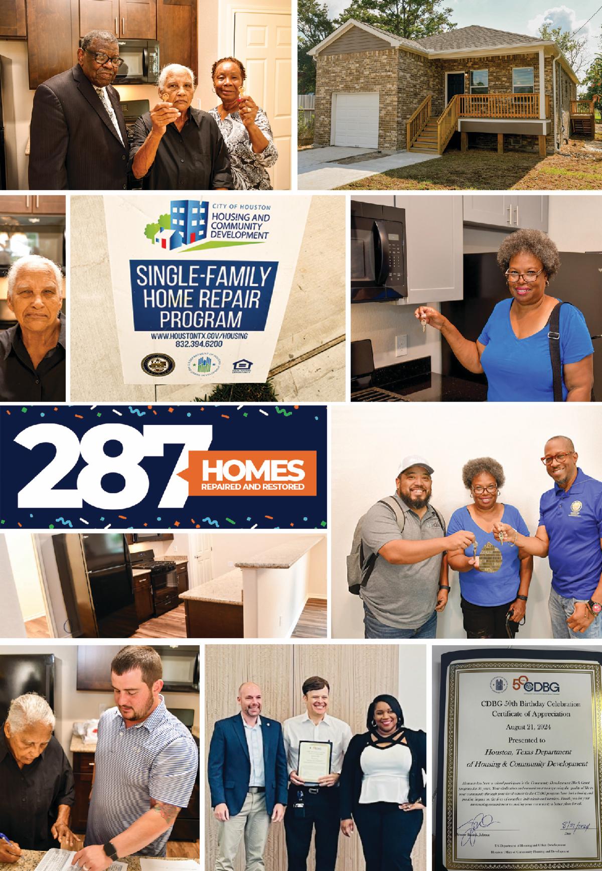 HCD’s Single-Family Home Repair Program stands as a testament to the department’s unwavering dedication to preserving the welfare of Houston’s homeowners. The preservation of existing homeownership is a critical pillar in HCD's mission. Since its inception, this program has successfully repaired and restored 287 homes. Services range from providing emergency and minor repairs to demolition and reconstruction.