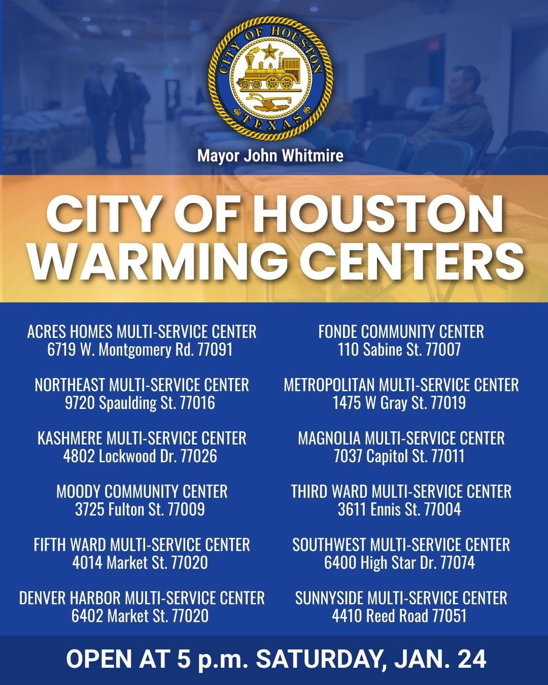 WARMING CENTERS WILL OPEN ACROSS THE CITY OF HOUSTON