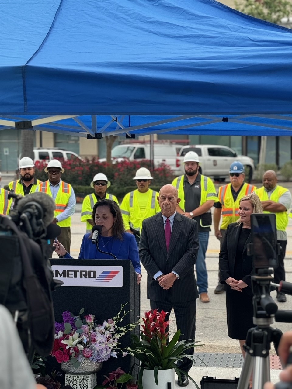 May 7, 2024 -- Today, Mayor John Whitmire joined METRO Chair Elizabeth Gonzalez Brock for a groundbreaking ceremony celebrating the Westheimer Improvement Project. The collaborative effort will repair the pavement across all lanes of a 6-mile stretch of Westheimer.