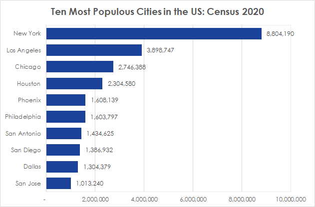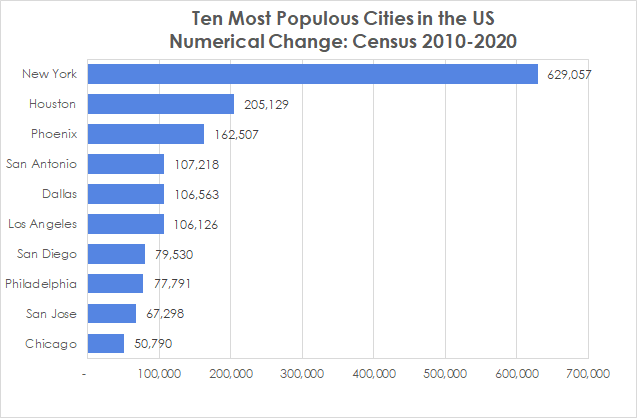 • Ten Most Populous Cities in the US Numerical Change Census 2020