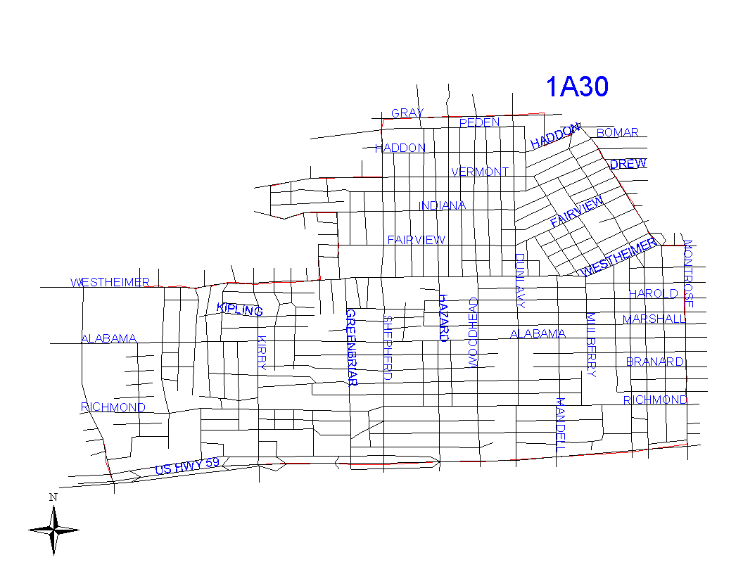 of 1A30. At the intersection with South Shepherd, the boundary