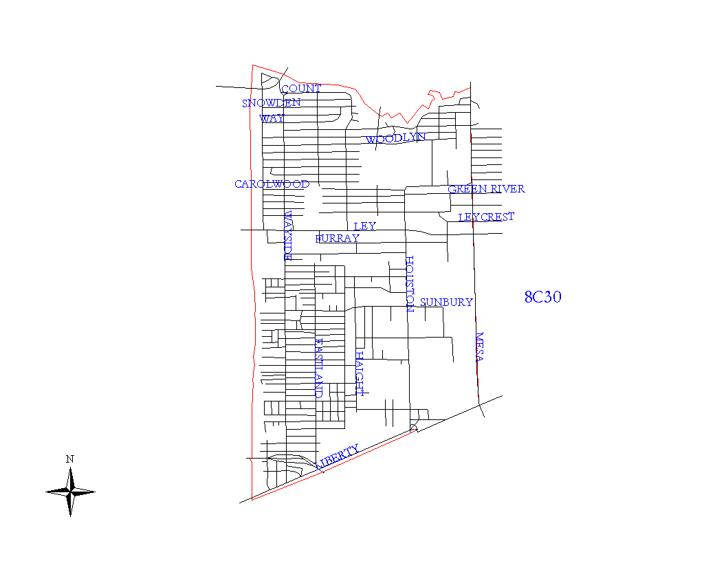 The boundary begins at the intersection of the HB&T railroad and Halls Bayou and goes east on Halls Bayou to the intersection of the Bayou with FM 527 (also called East Houston and Mesa Road.) It turns south on the west side of FM 527 and goes to SPRR railroad tracks that run parallel to Liberty Road. It turns southwest along Libery Road and goes to the HB&T railroad tracks. It turns north and follows the HB&T railroad tracks to the east side of Settegast Railroad Yards and continues on to the intersection with Halls Bayou, which is where it begins.