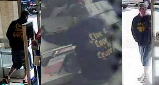 The suspect is described only as a white male in his early 20s, about 6 feet tall with a slim build. He was wearing a dark colored “hoodie” jacket with the words, “Live It, Love It or Leave It,” written in large white or yellow letters on the back. The suspect may also have several tattoos on the lower parts of his legs.