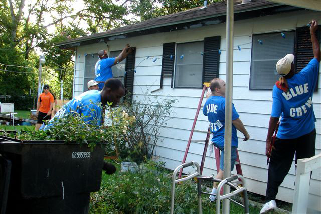 HPD's "BLUE CREW" Makes a Difference in Lives of Elderly Couple July 15, 2009 - Members of the Houston Police Department’s Community Outreach Unit (The “Blue Crew”) joined forces Saturday (July 11) with community and business volunteers to complete repairs of the home of an elderly, disabled Acres Homes couple. Medical problems have made it difficult for Mr. Woodrow Ward, 91, and his wife Mavis, 84, to get around. As a result, damage from Hurricane Ike made it difficult for the couple to get in and out of their home. The Blue Crew and additional volunteers, together with Lowe’s Home Improvement of Tomball and Pittsburgh Paint, painted the Ward’s home, built a porch and wheelchair ramp, and added landscaping. Photos of the repair work are attached. Anyone wishing more information may contact HPD Public Affairs at 713-308-3200. KJS/JFC/JAB