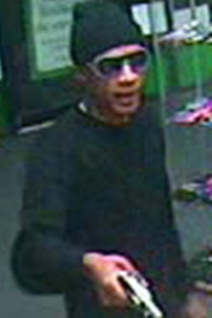 The suspect was seen talking on his cell phone when he entered the Voice Connect store at 9538 Richmond about 6:40 p.m. on Monday, Dec. 7. As he entered, he produced a handgun, pointed it at the clerk, and demanded money from the register. He then fired a shot over the clerk’s head before taking an undisclosed amount of cash and fleeing on foot.