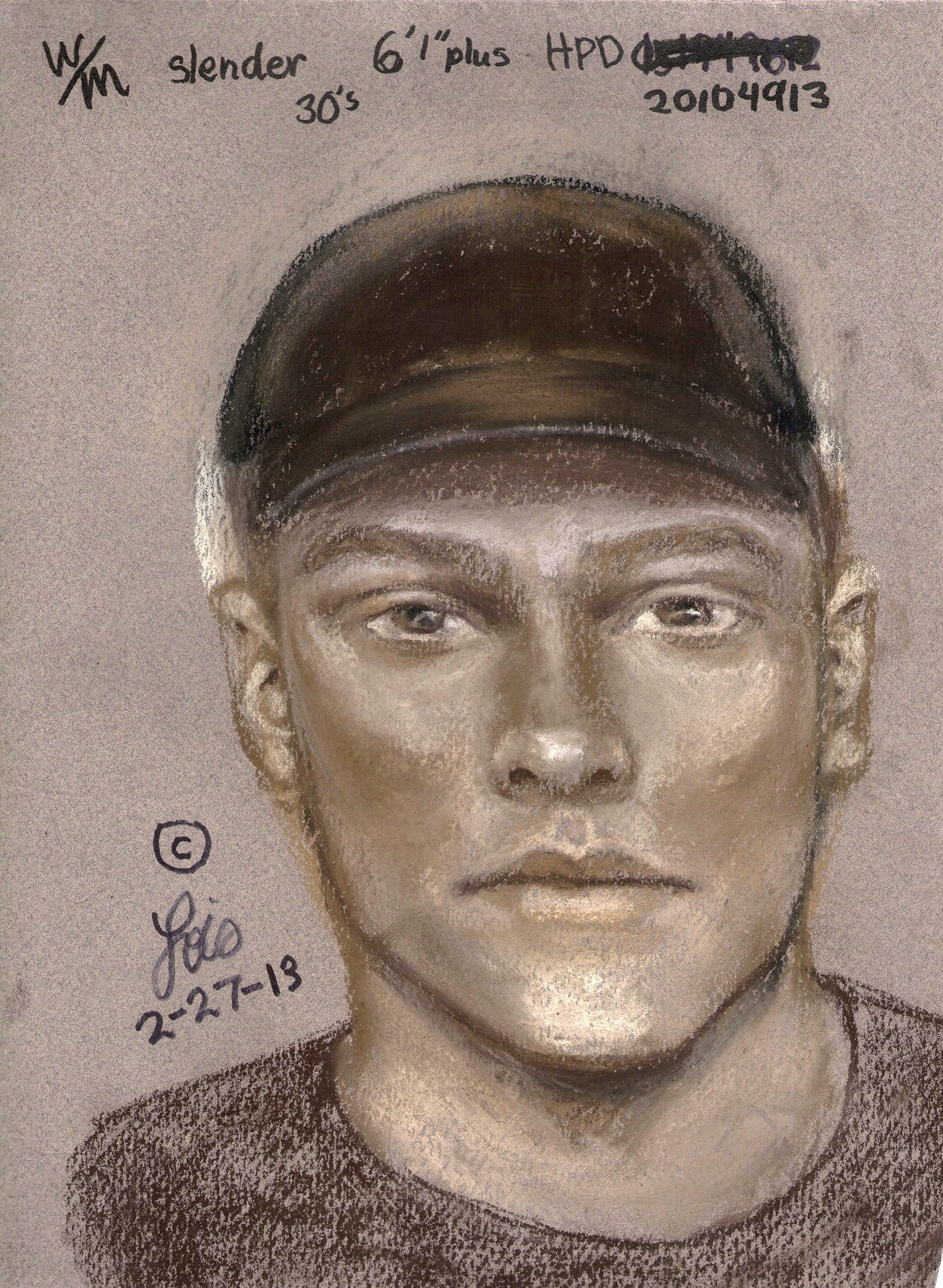 The suspect is described only as a white male in his 30s, about 6 feet tall, with a slender build. He is believed to have shaved his head to change his appearance. A composite sketch of the suspect is attached to this news release.