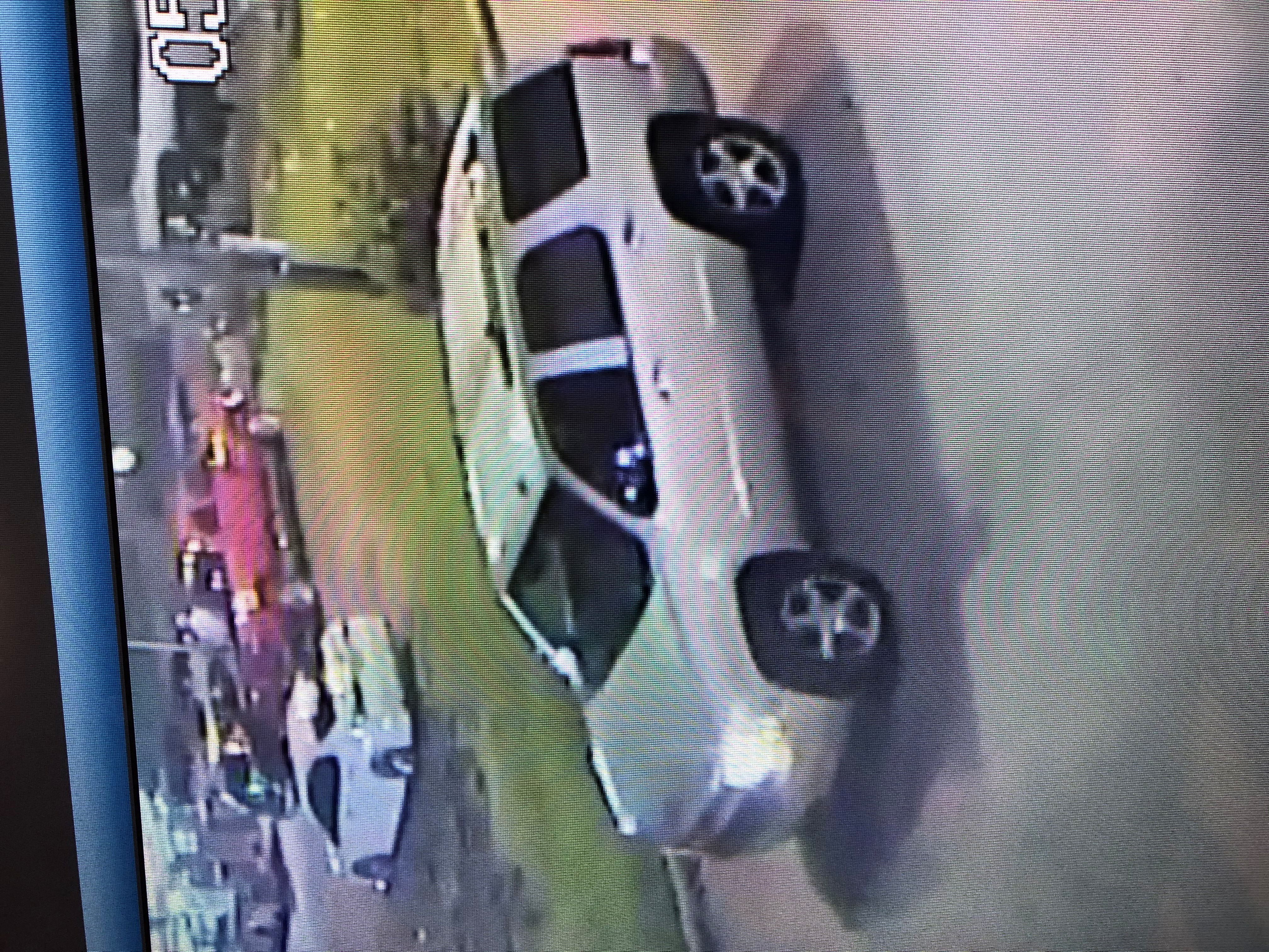 The suspect is described only as a Hispanic male in a gray or silver, older model Chevrolet Tahoe. Surveillance photos of the suspect and his vehicle are attached to this news release.